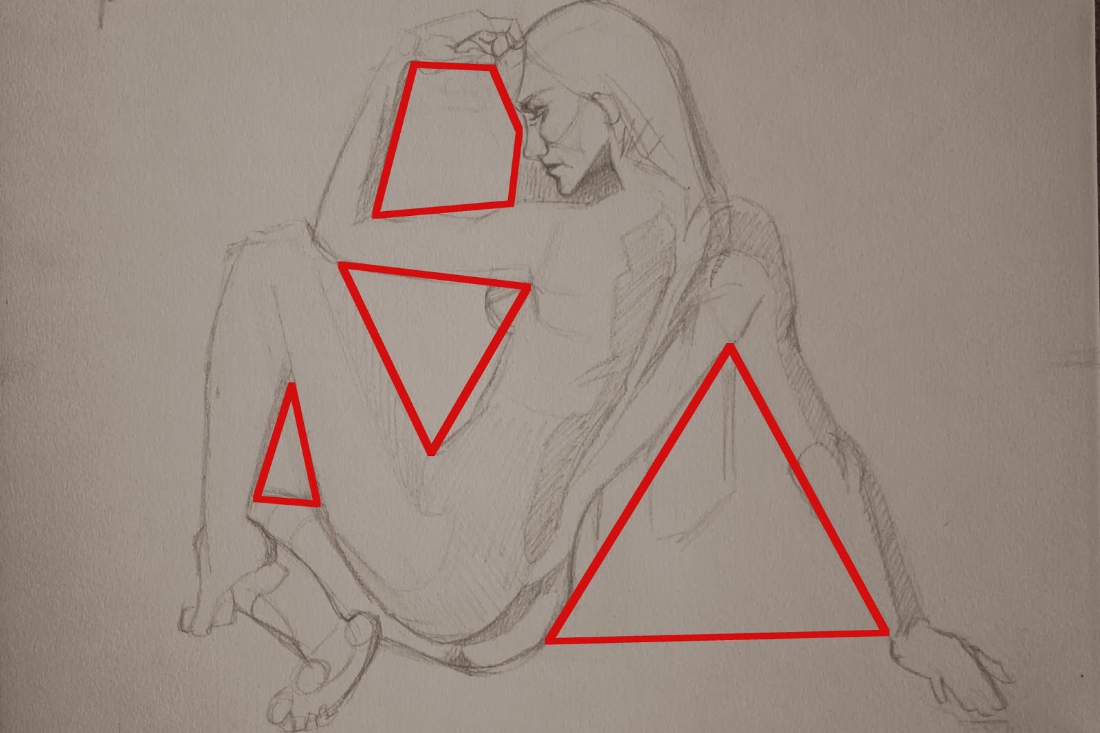 Aquí vale mucho aquello que nos repetía Loreto en sus clases de pintura en Leganés (y que incluso dio lugar a un blog): "todo a la vez". Es decir, no empecemos por el brazo y hagamos todas las sombras del brazo para luego pasar a la pierna y hacer todas las sombras de la pierna con el máximo detalle. ¿Por qué? Pues porque puede que luego tengamos que retocar todo el dibujo al darnos cuenta de que nos hemos pasado o no hemos llegado al tono requerido, lo que repercutirá en la coherencia del trabajo. Por eso en la ilustración que precede a este párrafo he puesto unos cuantos negros que se encuentran en toda la figura. Ello nos ayudará a ver donde se encuentra el máximo oscuro por oposición a la máxima luz (en la pierna izquierda básicamente) y de ahí valorar todos los tonos intermedios. Siguiente estadio: