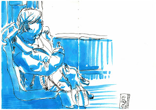 Drawing inside the public transport, David observes many attitudes that attract his attention and invite him to undertake philosophical considerations, like when all the people is immersed in his mobile phone and this leads him to think about the lack of communication and the loneliness.